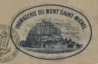 | Étiquette déposée le 26 mai 1877 par le comte Raoul-Marie Le Saige de La Villèsbrunne (1836-1895), propriétaire du château de La Villoët à Épiniac (Ille-et-Vilaine). Elle était destinée à figurer sur les fromages produits par le déposant dans l’une de ses propriétés situées au Mont-Saint-Michel. | |||||||||||||||||||||