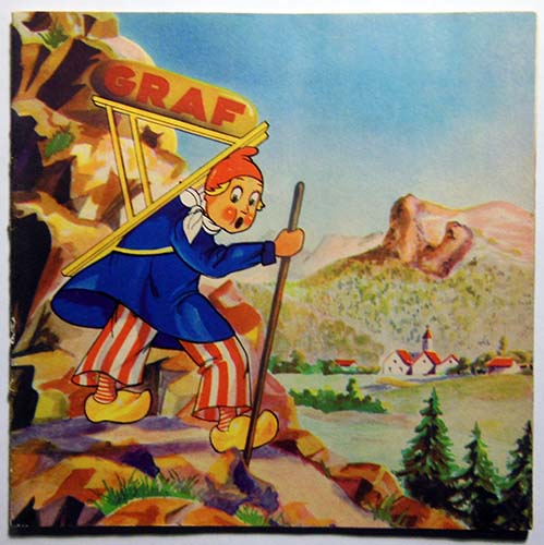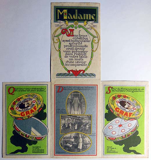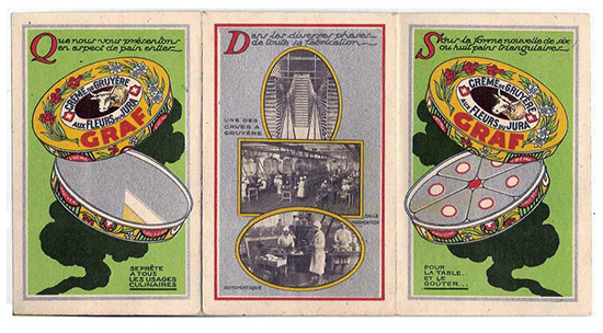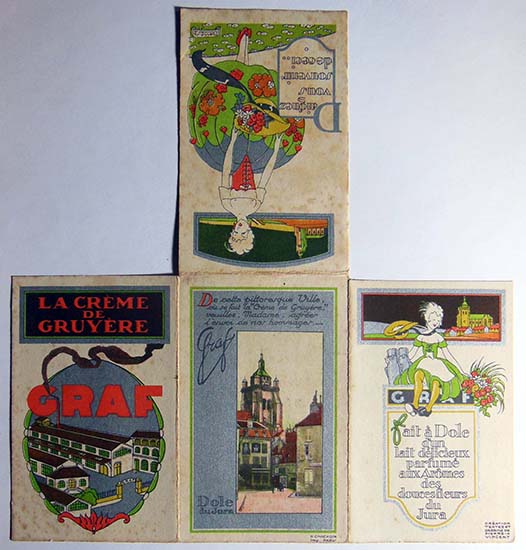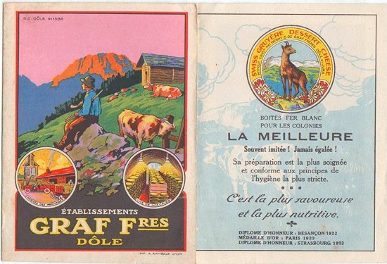 | Les publicités et boites Graf ont décoré les vitrines des crémeries | |||||||||||||||||||